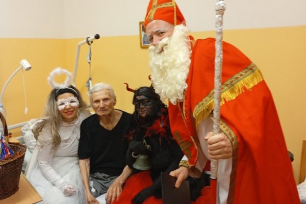 Do naší rýmařovské nemocnice zavítal Mikuláš i se svou družinou. Společně potěšili uživatele Sociální služby Nemocnice Rýmařov. Každého obdarovali malou drobností. Uživatelům tato milá návštěva i drobné dárečky udělaly obrovskou radost. Děkujeme! Za tým pracovníků Sociální služby Nemocnice Rýmařov Zuzana Matochová, DiS. Sociální pracovnice