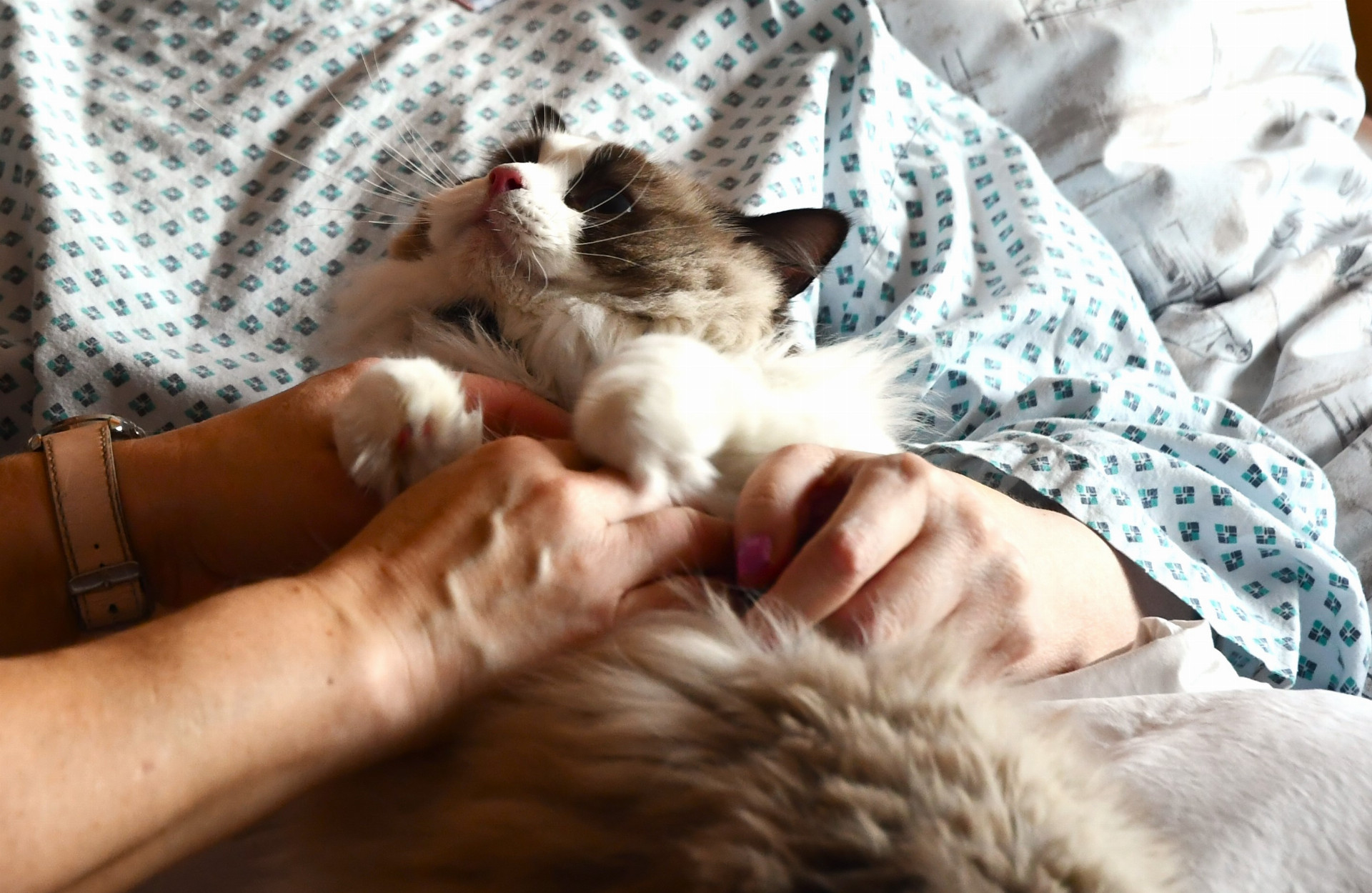 V krnovské nemocnici si první pacienti vyzkoušeli novinkou: felinoterapii, neboli návštěvu „kočičí terapeutky“. Felinoterapie nabízí podpůrnou léčbu, relaxaci, rehabilitační techniky a aktivizační metody založené na kontaktu pacienta s kočkou.