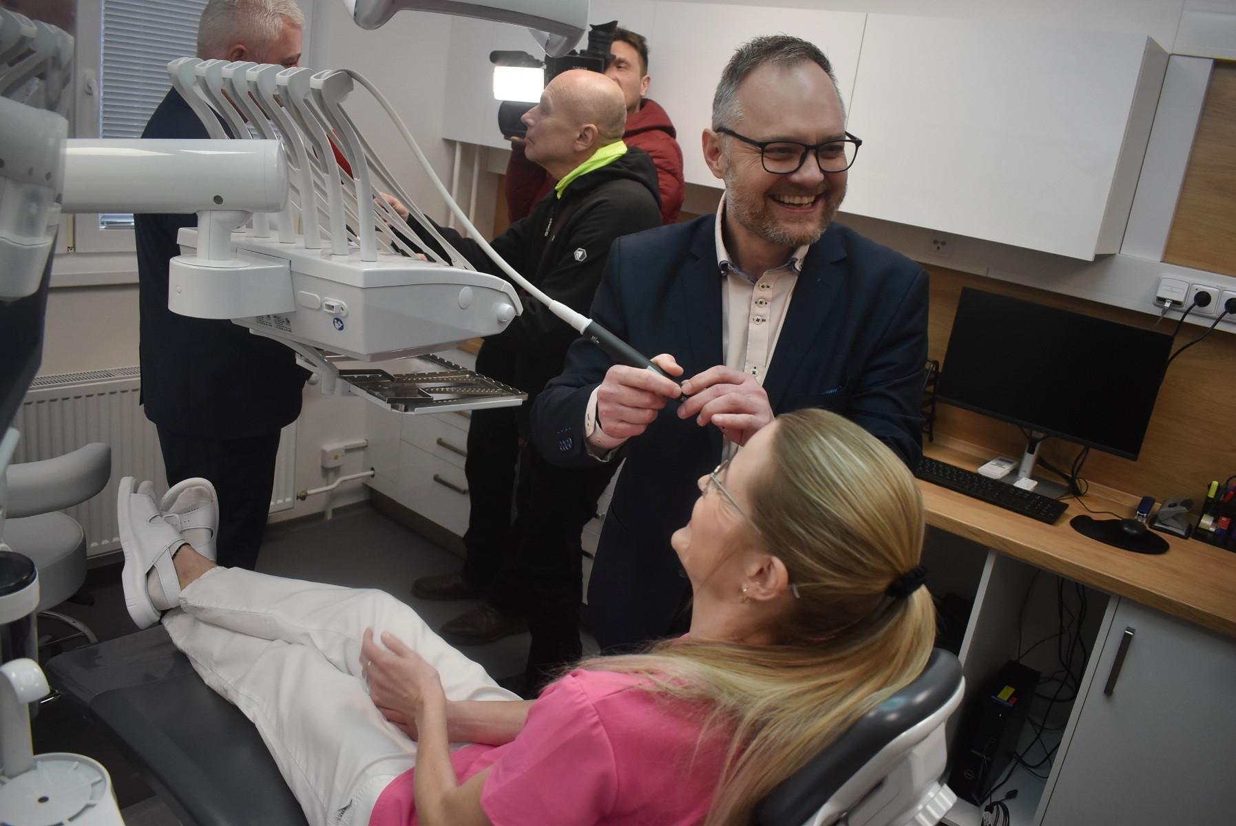 Hejtman Moravskoslezského kraje Jan Krkoška při prohlídce ordinace poděkoval řediteli krnovské nemocnice za mimořádnou aktivitu. „Žádná nemocnice není povinna zajišťovat stomatologickou péči pacientům. Projekt pana ředitele a senátora Václavce, který náš kraj několik let podporuje, je v rámci republiky unikátní. Myslím si, že mohu za sebe, za vedení kraje i za celou řadu starostů našeho kraje říci, že podporujeme legislativní změny, které pan senátor navrhuje. Víme, že v našem kraji zubaři schází desítkám tisíc pacientů a další zubaři se chystají do penze. Zahraniční zubaři pracující pod dohledem zkušených českých kolegů by mohli být řešením této krize,“ uvedl hejtman Moravskoslezského kraje Jan Krkoška.