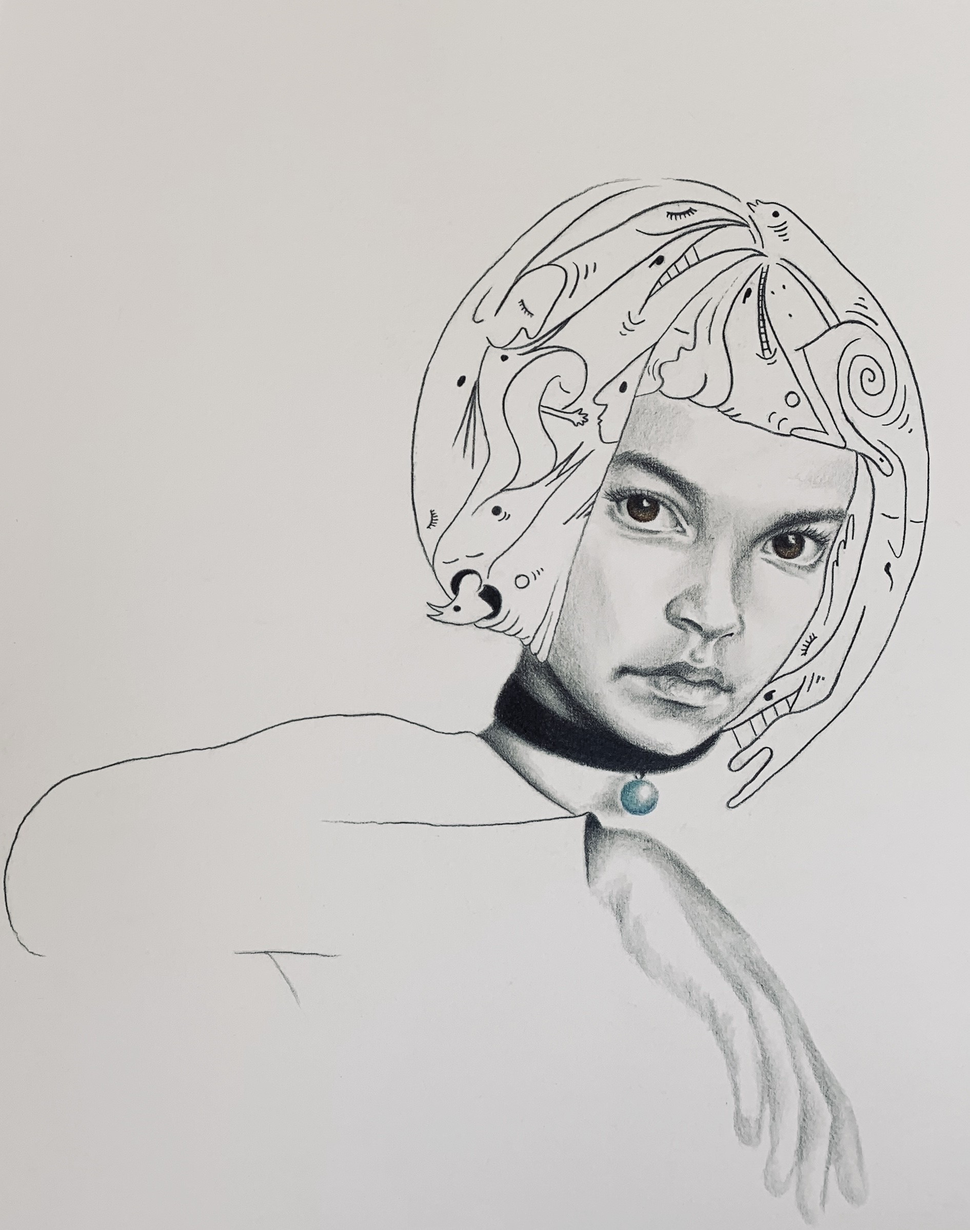 Ve své tvorbě se specializuje výhradně na portréty, lidí nebo zvířat. Některé mohou při zběžném pohledu působit nedokončeně, jejich neúplnost je ale záměrná. Tak jako obraz, na kterém bude pozorovatel marně hledat obličej. „Namalovala jsem jen kousek hlavy a cop s červenou gumičkou. Manžel kresbu zhodnotil, že je to škoda papíru, proč tam chybí obličej. To byl ale záměr. Ta dívka je totiž tak naštvaná, že ji opravdu nikdo nechce do obličeje vidět,“ vysvětlila Vlaďka Gajdošová. Obrazy na výstavy vybírá srdcem. Svá díla záměrně vystavuje bez jména, nechává na divákovi samotném, jaké emoce a pocity v kresbě najde. Pro ty, kteří umí v kresbě hledat, se nebojí vybrat ani díla na první pohled poněkud strašidelná.