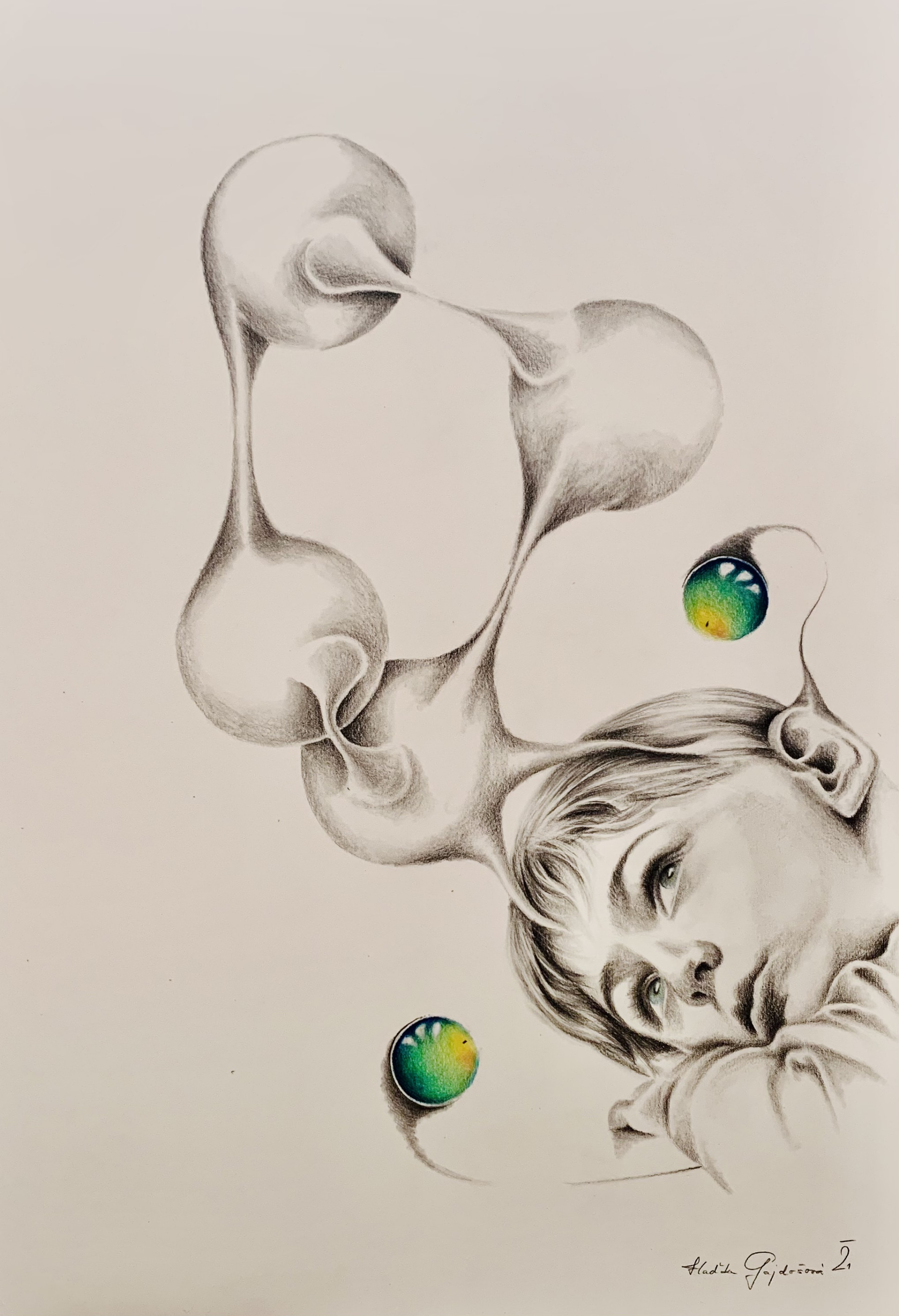 K malování přivedla Vladimíru Gajdošovou náhoda. Stačil krátký pohled na tříletou dcerku stojící na pozadí západu slunce. Ke každému svému obrazu má silné pouto. Vznikají většinou na základě vlastních pocitů a skutečných prožitků v konkrétních situacích. Realitu a osobní emoce ale vkládá do obličejů vymyšlených neexistujících postav. Inspirací se mohou stát i věci zcela obyčejné. „S manželem jsme v obýváku pokládali koberec, jenže jsme ho položili nakřivo, a tak jsme se jej snažili vyrovnat. Ale ať jsme za konec koberce tahali, jak jsme chtěli, nepohnul se ani o milimetr. Pak jsme přišli na to, že když pod koberec vlezu a nadzvednu ho zády, půjde s ním lépe manipulovat. Jenže já zalezla moc hluboko a on se za mnou zavřel… Trpím klaustrofobií, takže jsem se začala dusit, panikařit a s pocitem, že už se nikdy nedostanu ven, mi vyhrkly slzy. Když mě pak manžel vytáhl za nohy ven, dostal záchvat smíchu, protože si myslel, že je to děsná legrace, a já že prý taky brečím smíchy. Nakonec jsme se smáli oba a druhý den z toho vznikl obraz. Asi to tam málokdo uvidí, ale já vím – to je má klaustrofobie,“ popsala malířka okolnosti vzniku jednoho z obrazů.