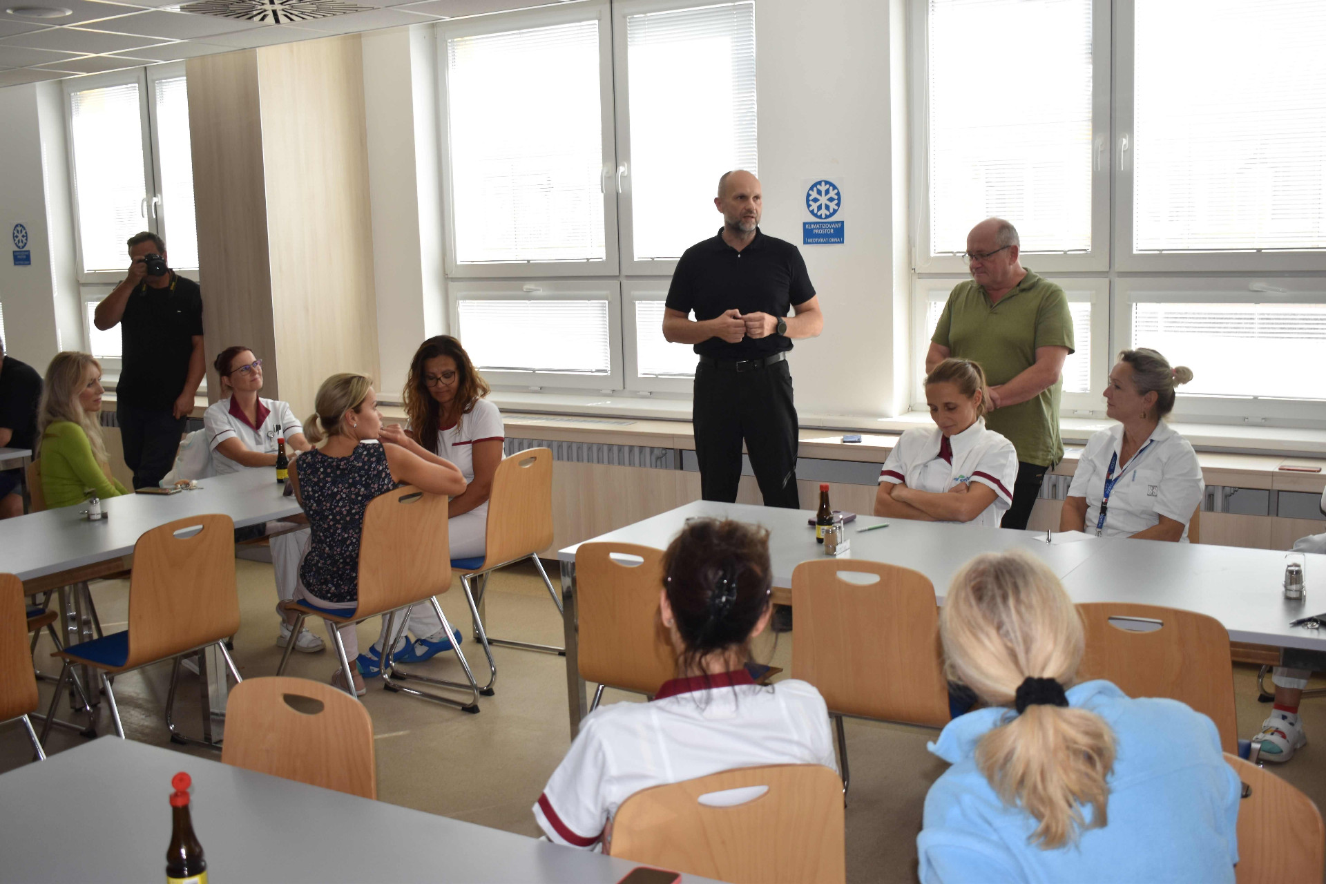 Do krnovské nemocnice dorazil ve středu odpoledne hejtman Moravskoslezského kraje Ing. Josef Bělica. „Navštívil jsem po boku pana ředitele a senátora Václavce nejhůře postižené obce Vašeho regionu, malé živnostníky. Vám, zdravotníkům a zaměstnancům nemocnice, jsem přijel osobně poděkovat za neskutečné nasazení. Dokázali jste bez vody, s výpadky elektřiny, a bez možnosti spojit se s rodinami zajistit péči pacientům z regionu. I když jste mnozí přišli o majetky, zůstali jste tady a pomáhali. Děkuji Vám za neskutečné nasazení a kus skvěle odvedené práce. Za vedení Moravskoslezského kraje slibuji, že krnovskou nemocnici opravíme a dále budeme investovat do jejího rozvoje,“ řekl hejtman na setkání se zaměstnanci krnovské nemocnice.