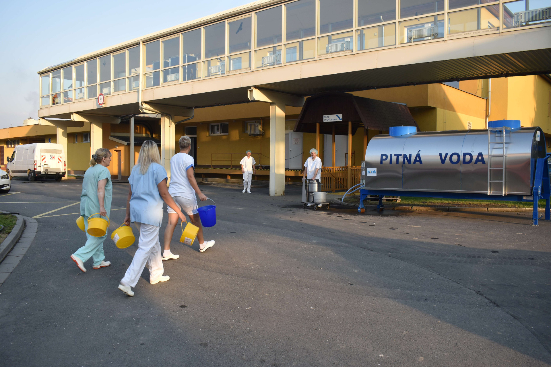 Díky paletám s balenou vodou a cisterně měla nemocnice pitné vody stále dostatek. Samotné vaření ale komplikoval fakt, že vodu načepovanou z cisterny není možné implementovat do moderních vařičů a spotřebičů. Například konvektomaty a myčky potřebují k provozu vodu s tlakem z vodovodu, takže do nich nestačí nalít vodu kýblem. Mají pojistky, aby nefungovaly, když se odpojí od tekoucí vody. Tudíž stravovacímu provozu nepomohl ani fakt, že je k dispozici elektřina z hasičských centrál. „Stravovací provoz naší nemocnice musel vyřadit polévky z jídelníčku z několika důvodů. Když přestaly fungovat výtahy, bylo nutné tácy s obědy vynášet ručně po schodech do pater a nic přitom nerozlít. Také vodu na vaření bylo potřeba každý den tahat ve velkých hrncích od cisterny do kuchyně a i to bylo velmi náročné,“ popsala období provozně technická náměstkyně nemocnice Ing. Alena Motlíčková.