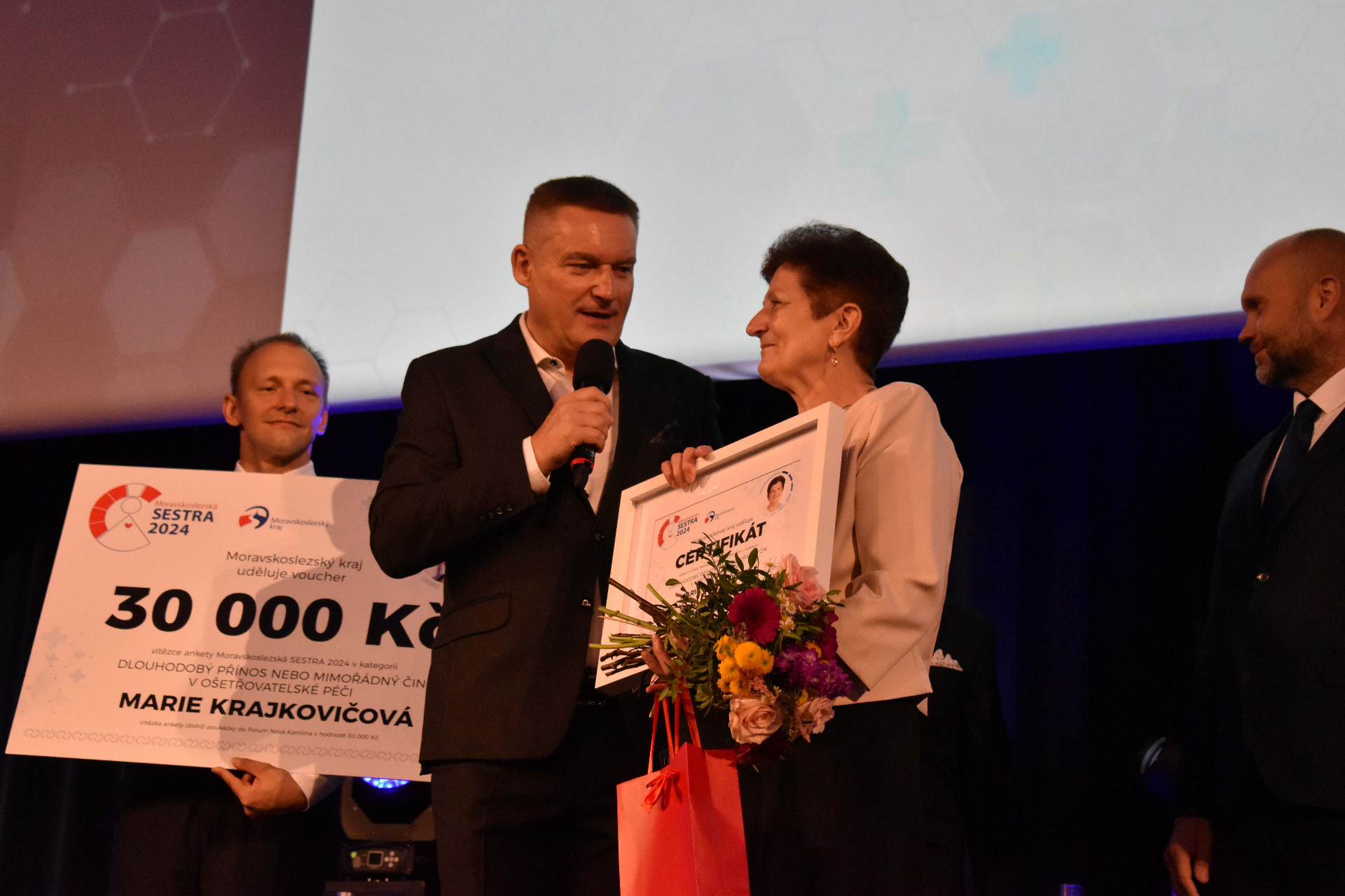 Obrovského úspěchu se dočkala zdravotní sestra Sdruženého zdravotnického zařízení Krnov Marie Krajkovičová. Odborná porota ji určila v rámci ankety Moravskoslezská sestra 2024 jako vítězku kategorie „Ocenění za dlouhodobý přínos nebo mimořádný čin v ošetřovatelské péči“. Ocenění převzala na galavečeru v Ostravě.