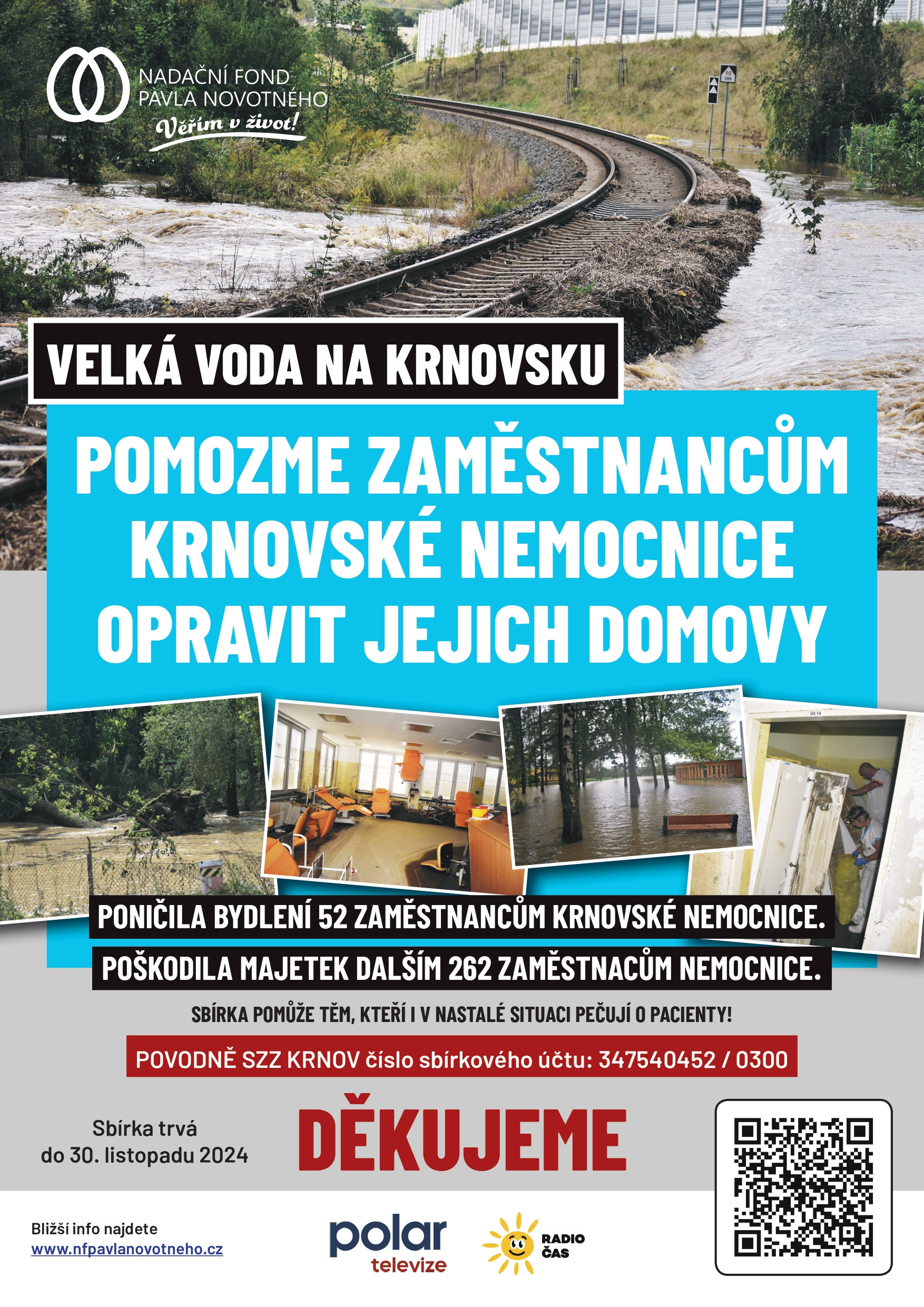 V krnovské nemocnici pracuje bezmála tisíc zaměstnanců. Devastující povodeň, která se prohnala Krnovskem, zničila bydlení 52 zaměstnancům nemocnice. Více než 250 dalších zaměstnanců nemocnice má své domovy poškozeny. Na základě oficiální informace vydané nemocnicí vyhlásil Nadační fond Pavla Novotného veřejnou sbírku.