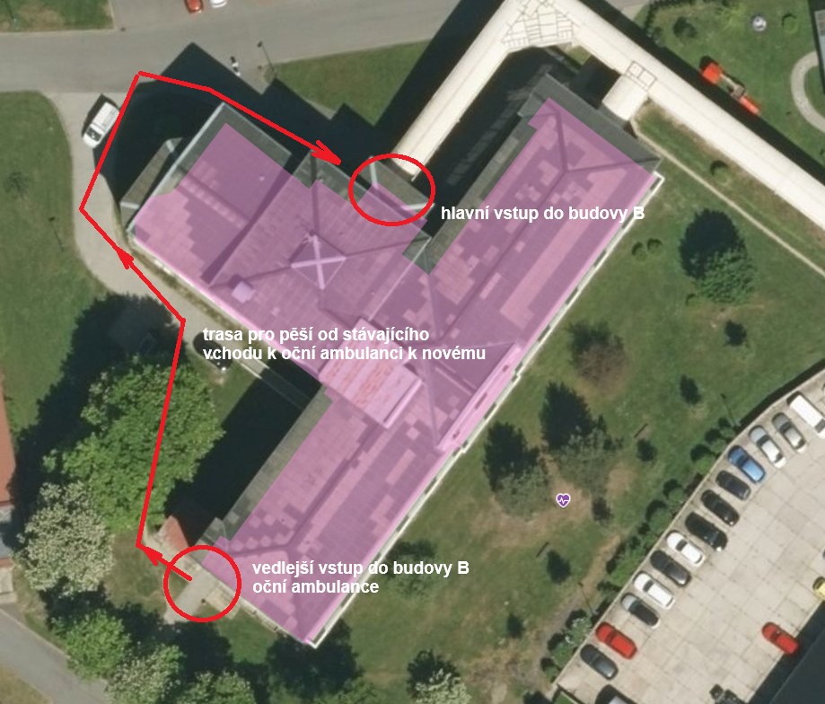 „Pro toto opatření jsme se rozhodli z bezpečnostních důvodů. Zejména pro pacienty oční ambulance, ambulance ORL nebo rehabilitace, kteří dosud byli zvyklí do budovy B vstupovat zadním vchodem, jsme v mapce vyznačili doporučenou trasu kolem objektu k hlavnímu vchodu,“ uvedl Ing. Jindřich Suchý, bezpečnostní manažer SZZ Krnov.