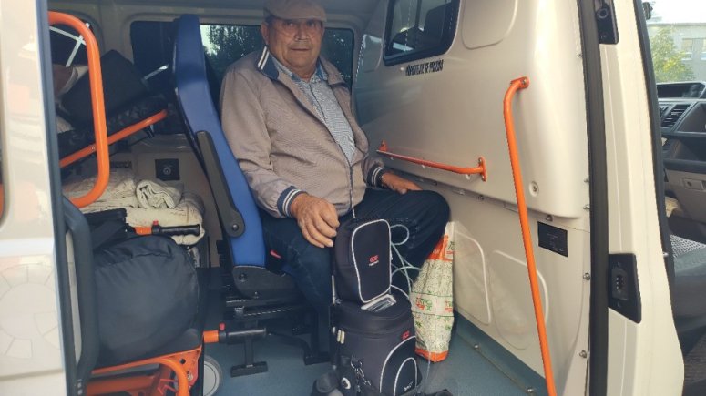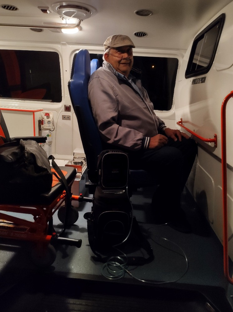 František Vrána absolvoval sanitkou krnovské nemocnice 80 km dlouhou cestu do Olomouce, kde jej čeká řada specializovaných vyšetření. „Byla to pohodlná cesta. Doma mám klasický velký přístroj, se kterým ani nepohnu, tady jsem na cestu dostal jen takový malý batoh, který je pohodlnější a přitom výkonnější. Dřív byla jakákoli cesta problém, teď je to brnkačka,“ pochvaloval si pacient zážitky z jízdy.