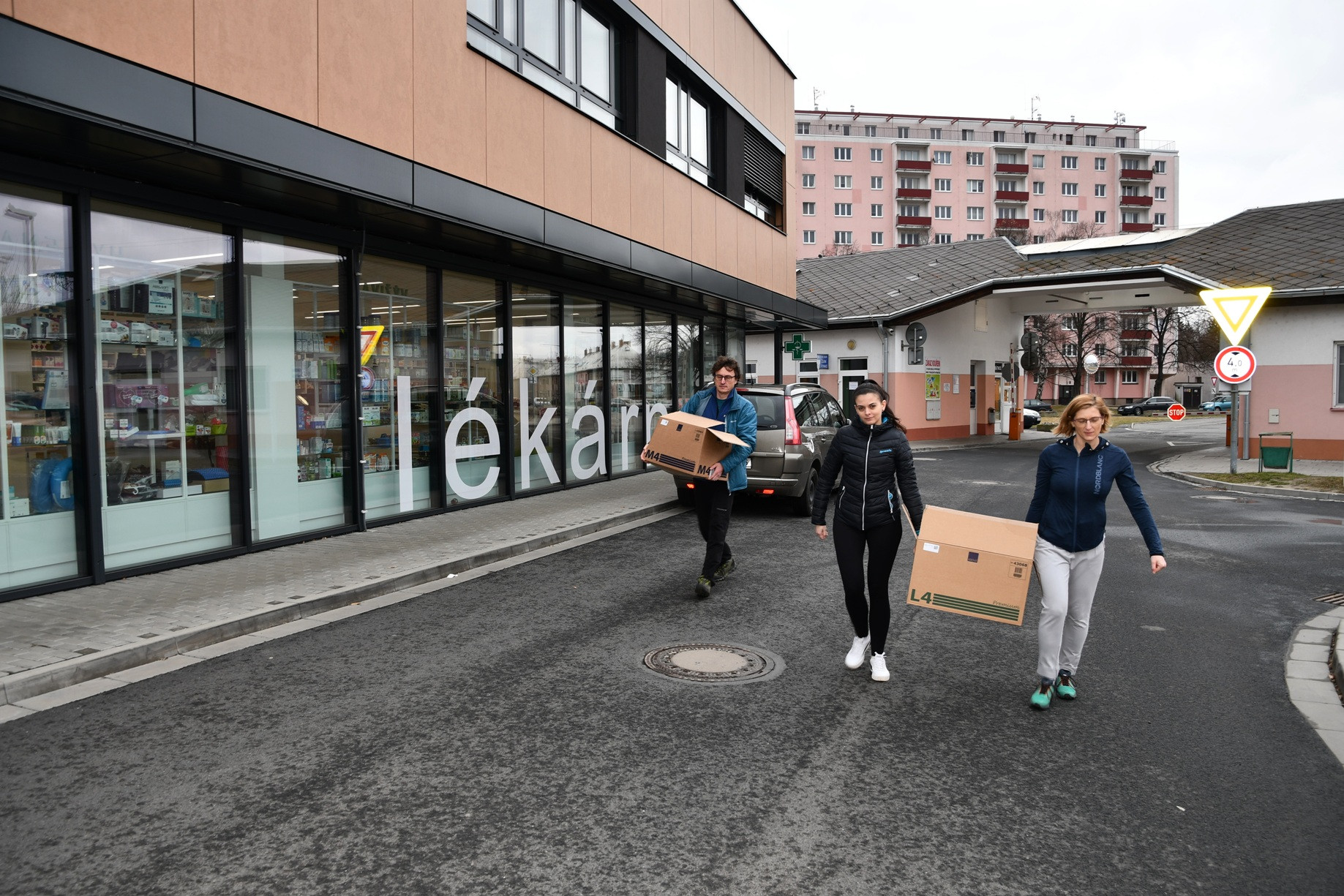 FOTO – lékárna 1, 2 – Dvě krabice plné důležitého materiálu /masti, dezinfekce/ nachystal tým lékárny krnovské nemocnice. FOTO Jiří Krušina