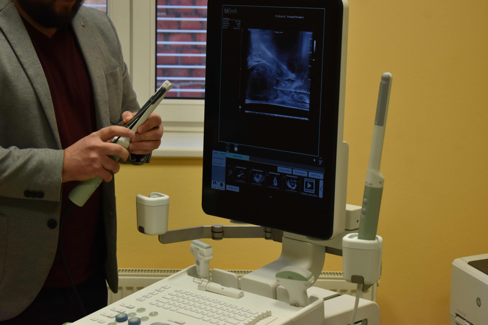 Protože v krnovské nemocnici je dodnes provozuschopný starý ultrazvuk BK medical Merlin, se kterým urologové před dvaceti lety začínali tento typ vyšetření, nabízela se možnost názorně demonstrovat, jaký obrovský technologický skok se odehrál ve zdravotnické přístrojové technice.