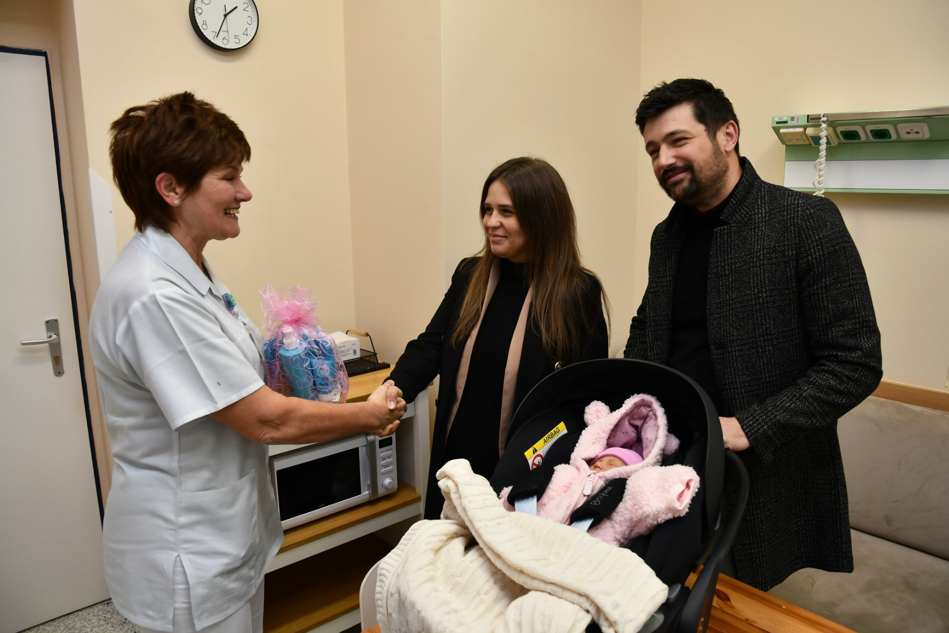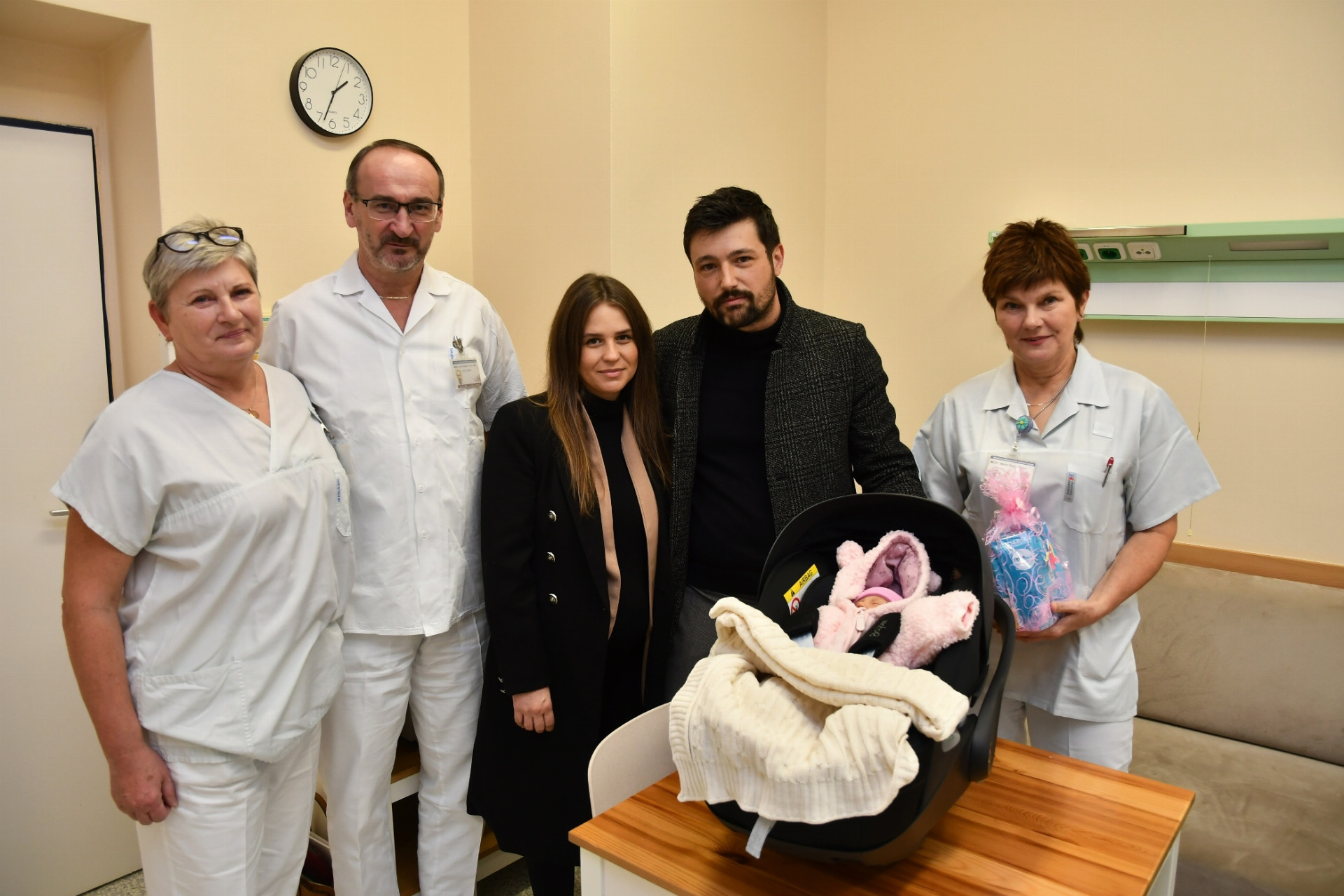 Dáreček od nemocnice pro první miminko rodičům předala náměstkyně pro léčebnou péči SZZ Krnov MUDr. Marie Žaloudíková spolu s primářem gynekologicko-porodnického oddělení MUDr. Jozefem Pitoňákem, Ph.D. „Na první miminko jsme letos sice malinko čekali, ale už se nám oddělení plní maminkami,“ sdělil primář Pitoňák.