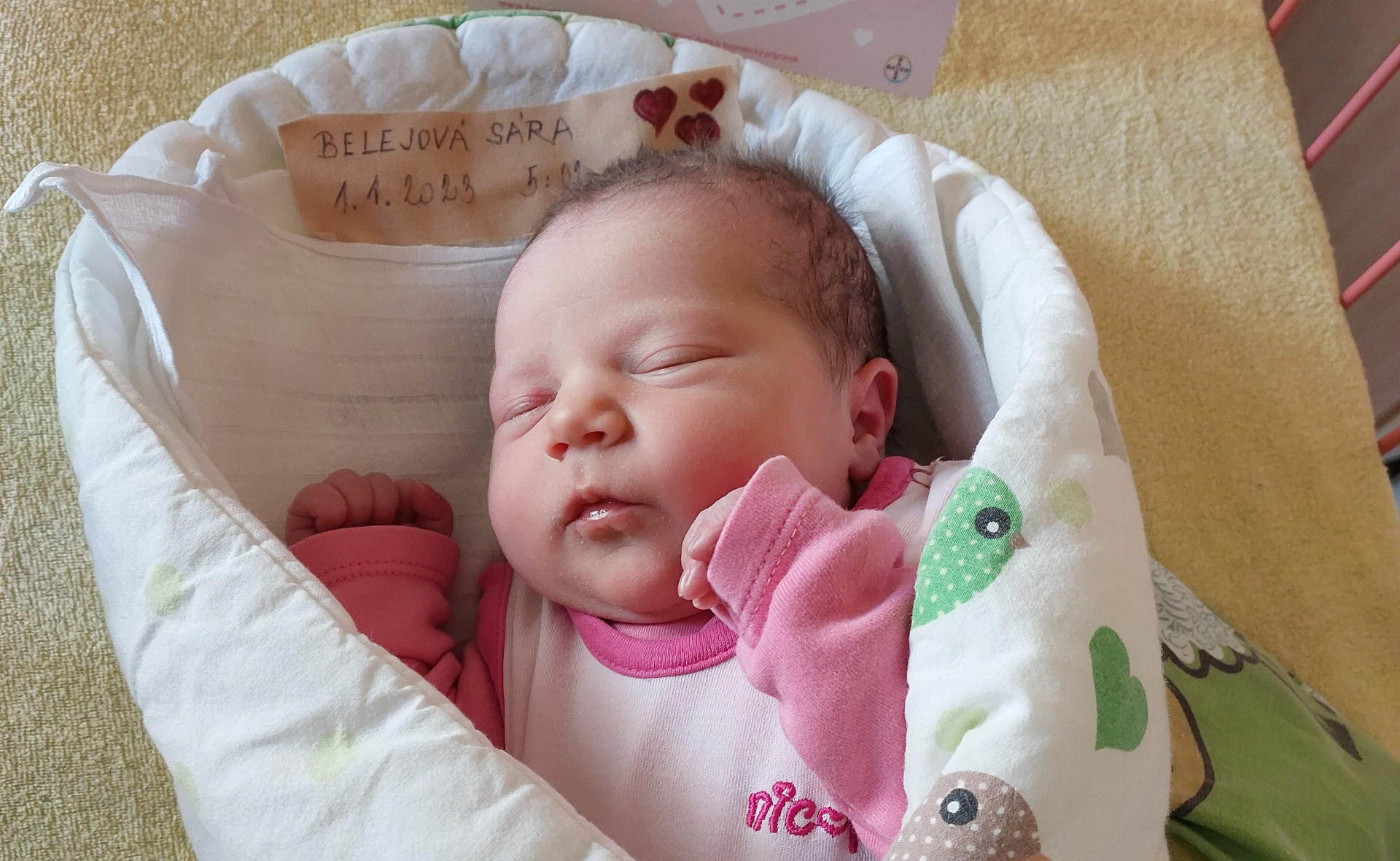 Nejkrásnější začátek nového roku připravila svým rodičům Sára Belejová z Krnova. V porodnici Sdruženého zdravotnického zařízení Krnov přišla na svět v 5:02. Rodiče i lékaři tak v ranních hodinách přivítali první miminko Krnova i celého okresu Bruntál.
