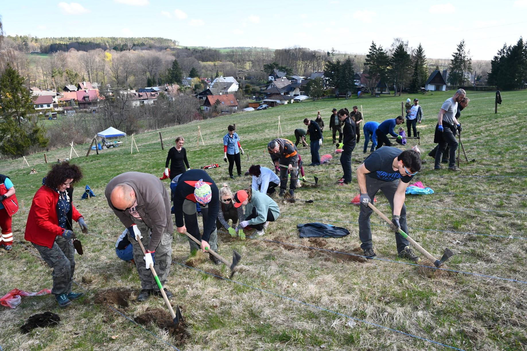FOTO les 1, 2, 3, 4, 5, 6, 7, 8, 9, 10, 11 - Zaměstnanci a přátelé krnovské nemocnice vysadili 4 000 sazenic stromků v Brumovicích-Pochni. Foto Jiří Krušina