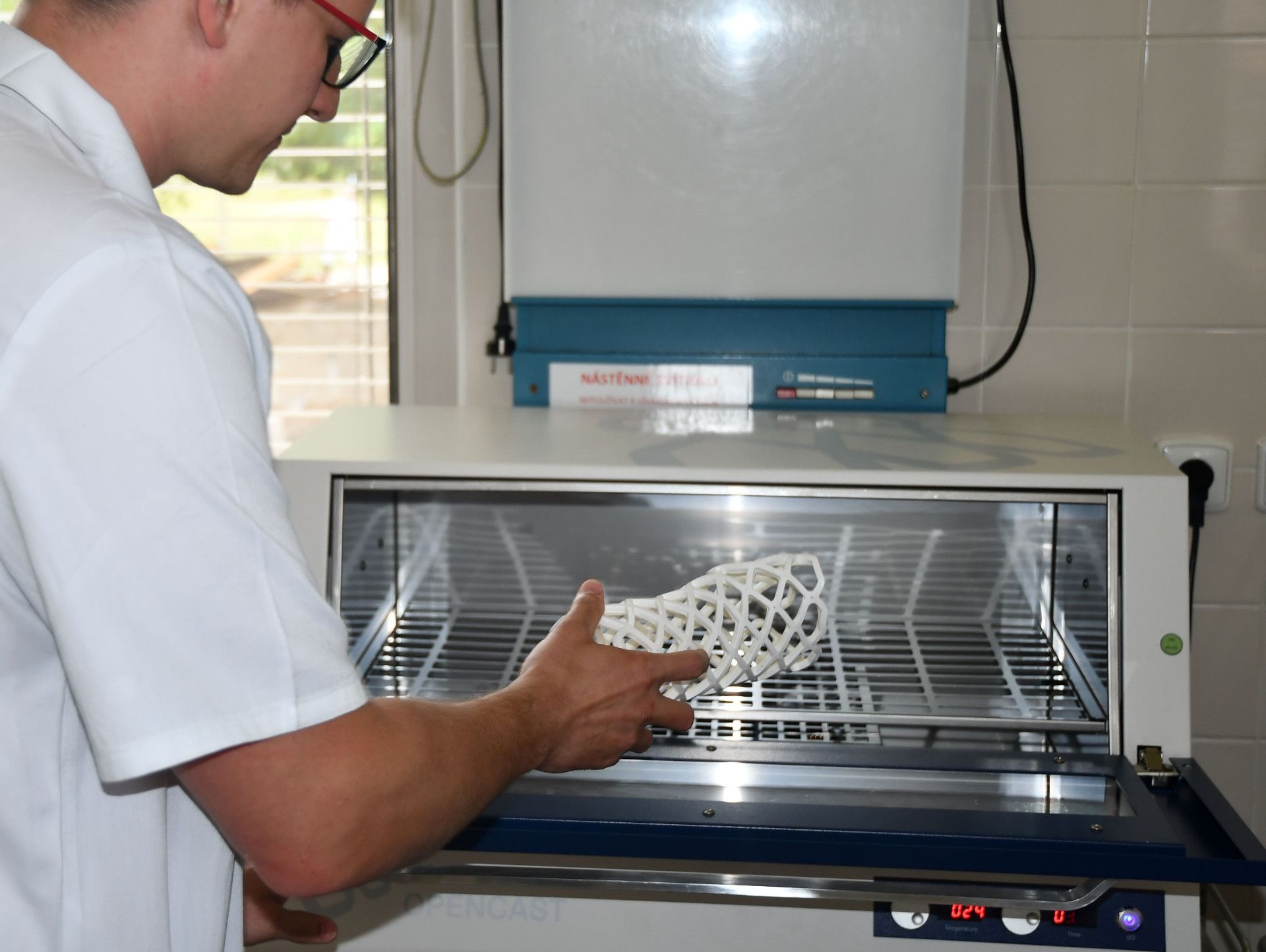 „Materiál v podobě bílé mřížky stačí nahřát horkým vzduchem ve speciální „troubě“, aby změknul a vytvaroval se přesně podle končetiny. Pacient s takovou fixací se nemusí nijak omezovat při mytí, sprchování ani koupání. Většina vody mřížkou jen proteče, a zbytek se snadno vysuší ručníkem nebo fénem. OPENCAST je zcela prodyšný, takže pokožka nebude svědit. Jde o hygienické řešení, a navíc zraněná končetina stále bude pod vizuální kontrolou. Nasazování nahřáté mřížky za pomoci plastových svorek zabere pár minut. Sejmutí je stejně snadné a rychlé,” představil novinku ortoped krnovské nemocnice MUDr. Rostislav Kocián.
