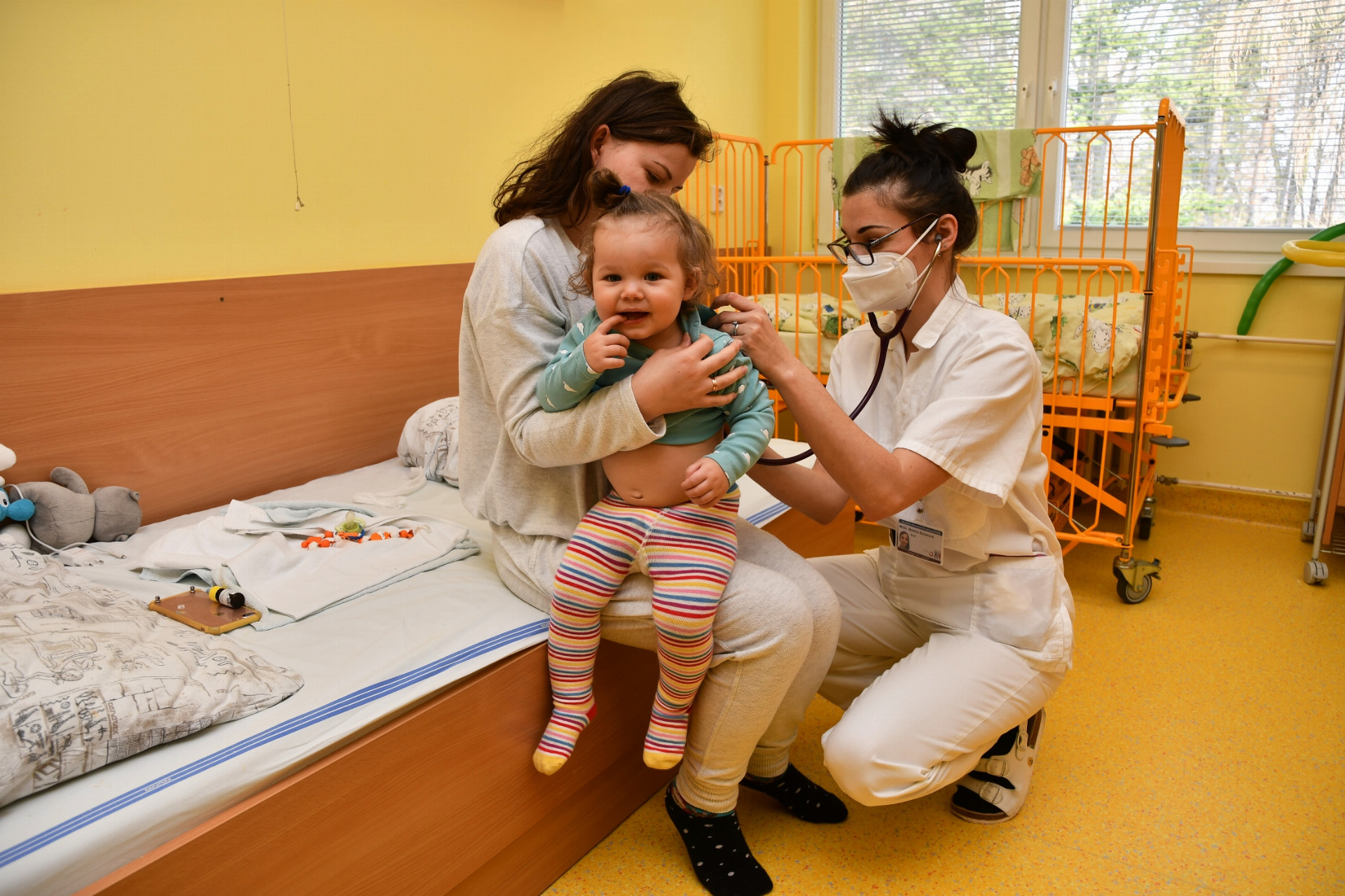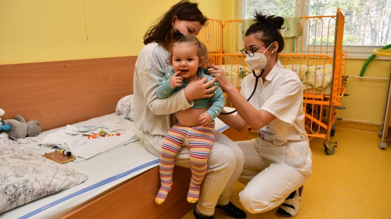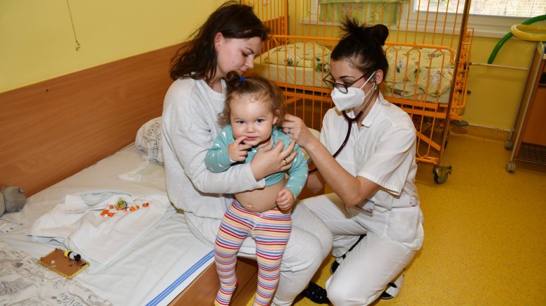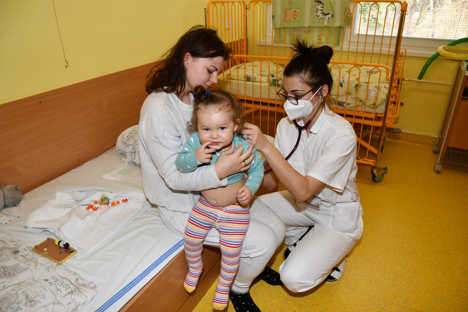 Foto maminka Káťa 1, 2 – Roční Eva Zamanská skončila po náročném útěku z Ukrajiny v péči zdravotníků krnovské nemocnice. Vysoké horečky jsou pryč, i kašel ustupuje. Holčička s maminkou Káťou budou moci brzy zpět do Bruntálu, kde našly azyl u dobrých lidí. Foto Jiří Krušina